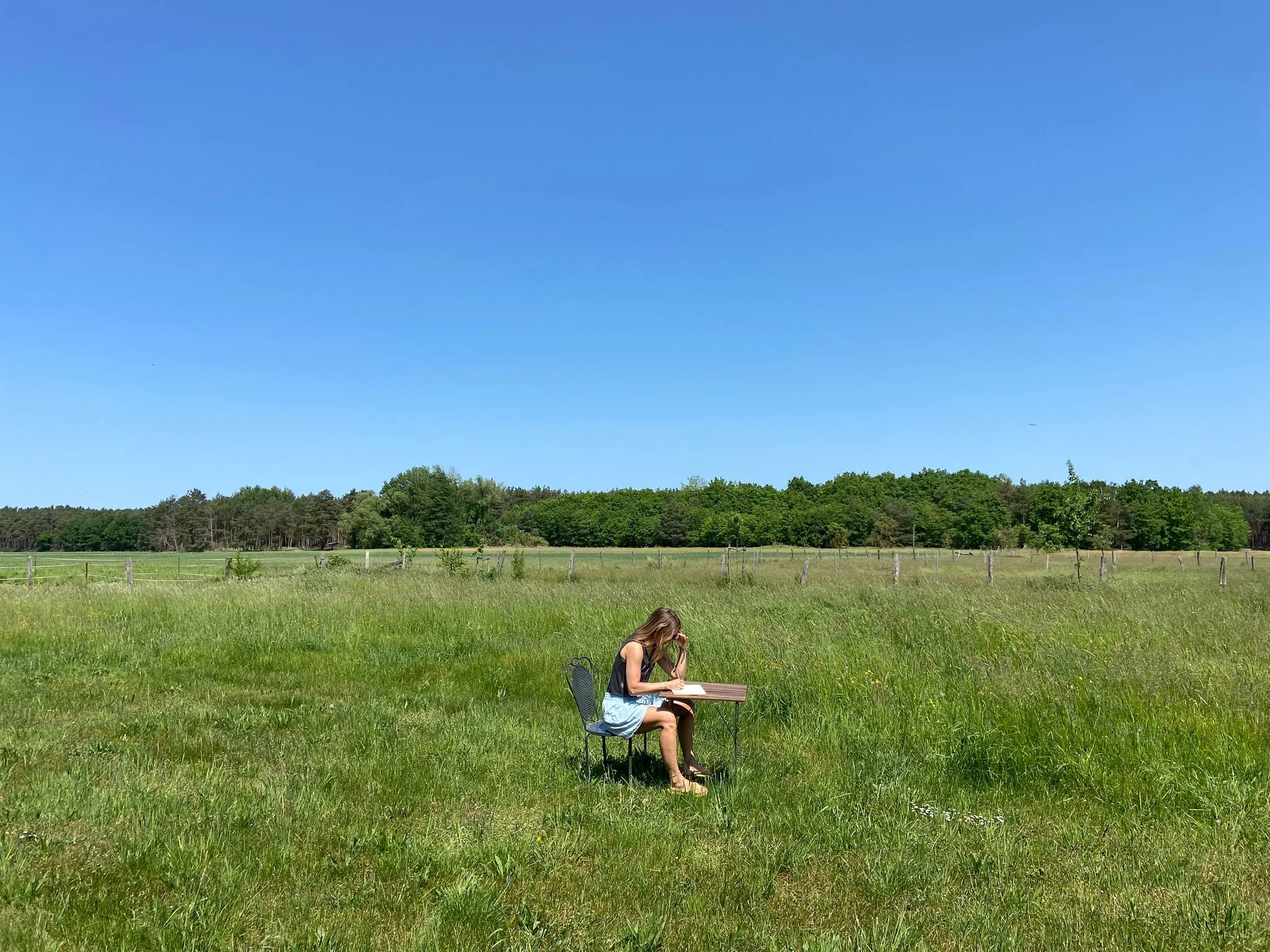wir schreiben drinnen, draußen, im Sitzen und im Liegen
